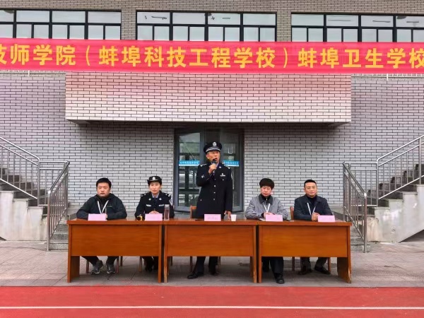 为深入推进法治校园建设,增强学生法治观念,筑牢校园安全防线。10月20日下午,学院开展2025年秋季学期以“警钟长鸣、法护青春”为主题的法治教育报告会。本次报告会于田径场举行,覆盖24级、25级共112个班级,5000余名师生共同参与。副院长陈垚,淮上区双墩派出所所长梅厚斌,副所长唐晓菲参加了此次活动。