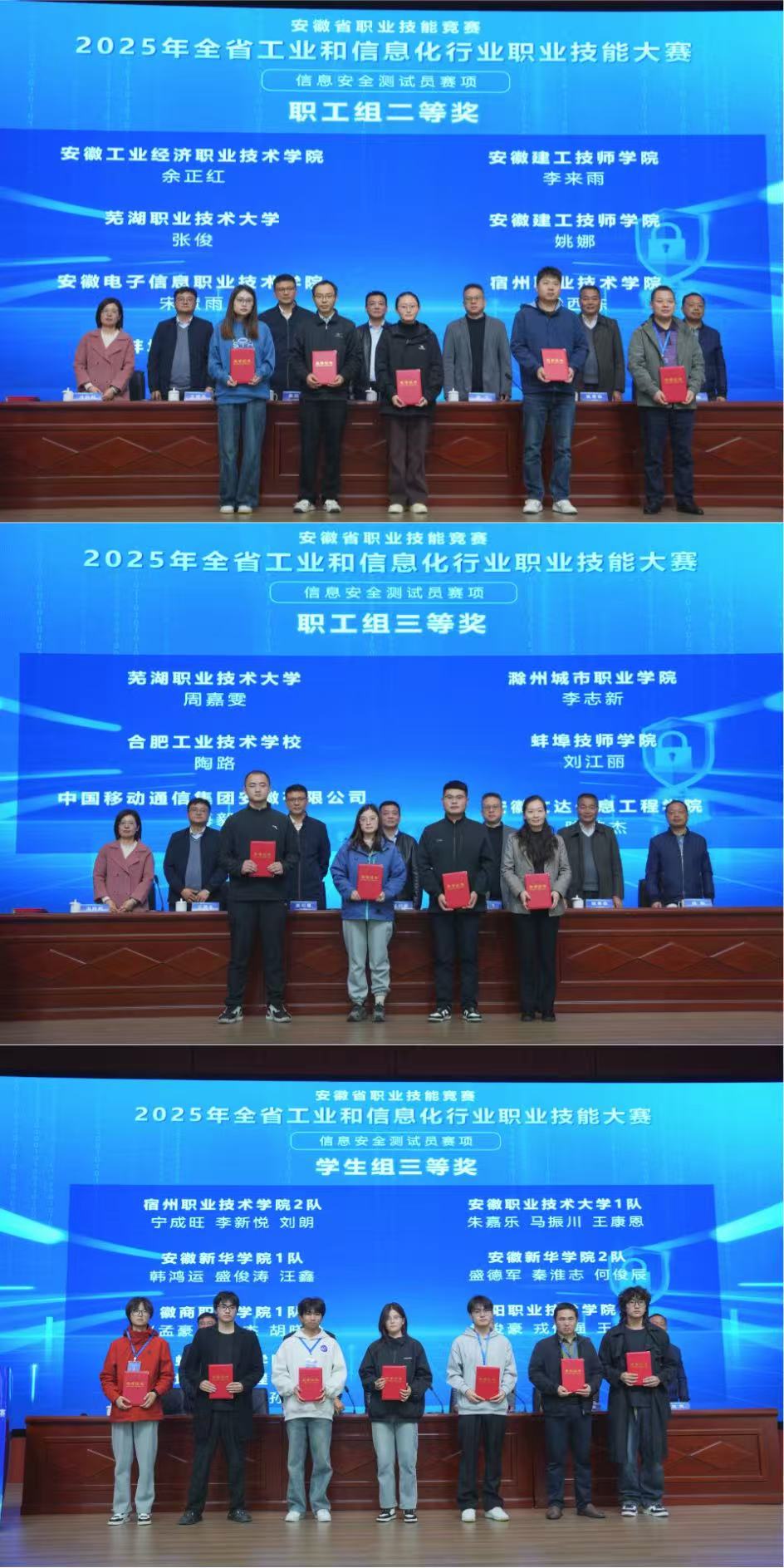 技能比武筑匠心,以赛促学砺精兵 ——电子信息工程系选手参加,2025 年“安徽省工业和信息化行业职业技能大赛信息安全测试员”赛项斩获佳绩