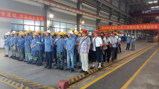 2015年7月9日,在经过长达2个月时间的培训后,安徽柳工起重机有限公司技能大比武暨企业培训班鉴定考核拉开序幕。此次企业技能比武是建立在我校与企业共同开设的提升培训班的基础上进行的,共有起重机驾驶员、冷作工(铆工)、焊工三个工种参加比武。我校提供比武全程技术支撑,选派了超过10人的考评员队伍,精心设置了竞赛试题。市人社局、市总总工会领导极为重视企业在岗职工技能提升,比武当天人社局谢局长、职业能力建设科孙科长、市职业鉴定指导中心祁主任、市总工会翟主席、经济部王部长等领导亲临现场,企业相关领导全程参与比武。到晚上7点,三个工种比武圆满完成。