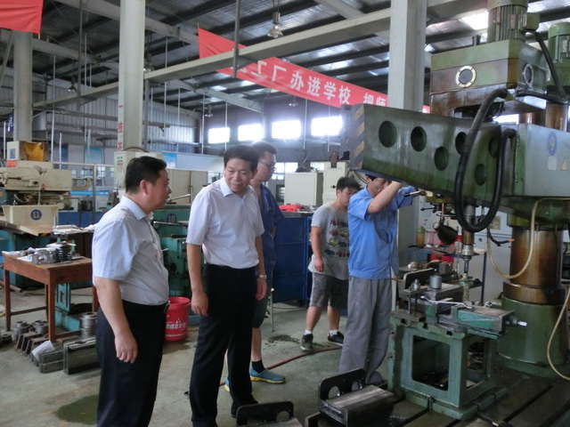 在实训车间,听到隆隆的机器声,看到汗流浃背精心操作的工人师傅和摆放整齐的新产品时,孟局长走到机器旁,走近工人师傅们,对大家辛苦劳动表达了亲切慰问,对他们的付出给予充分肯定和鼓励,并叮嘱大家注意防暑降温,务必确保生产安全和身体健康。