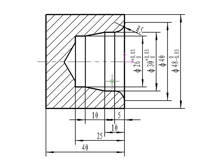 ⑵ 该零件可采用G00、G01进行车削加工。注意退刀时,先X方向后Z方向,以免刀具撞上工件。